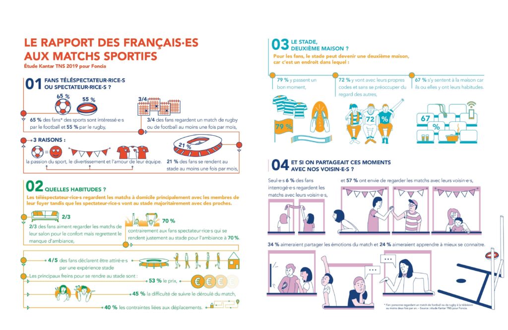 Réalisée par Kantar TNS pour Foncia, une étude 2019 indique que pour les Français·e·s, on n’est jamais aussi bien que chez soi pour regarder un match de rugby, mais à l’inverse, l’ambiance d’un stade est une expérience unique à vivre dans les meilleures conditions. L’objectif de Foncia est de promouvoir les deux expériences, en connectant les habitants d’un même immeuble, pour leur permettre de se retrouver chez eux pour visionner un match, ou s’organiser pour se rendre au stade.