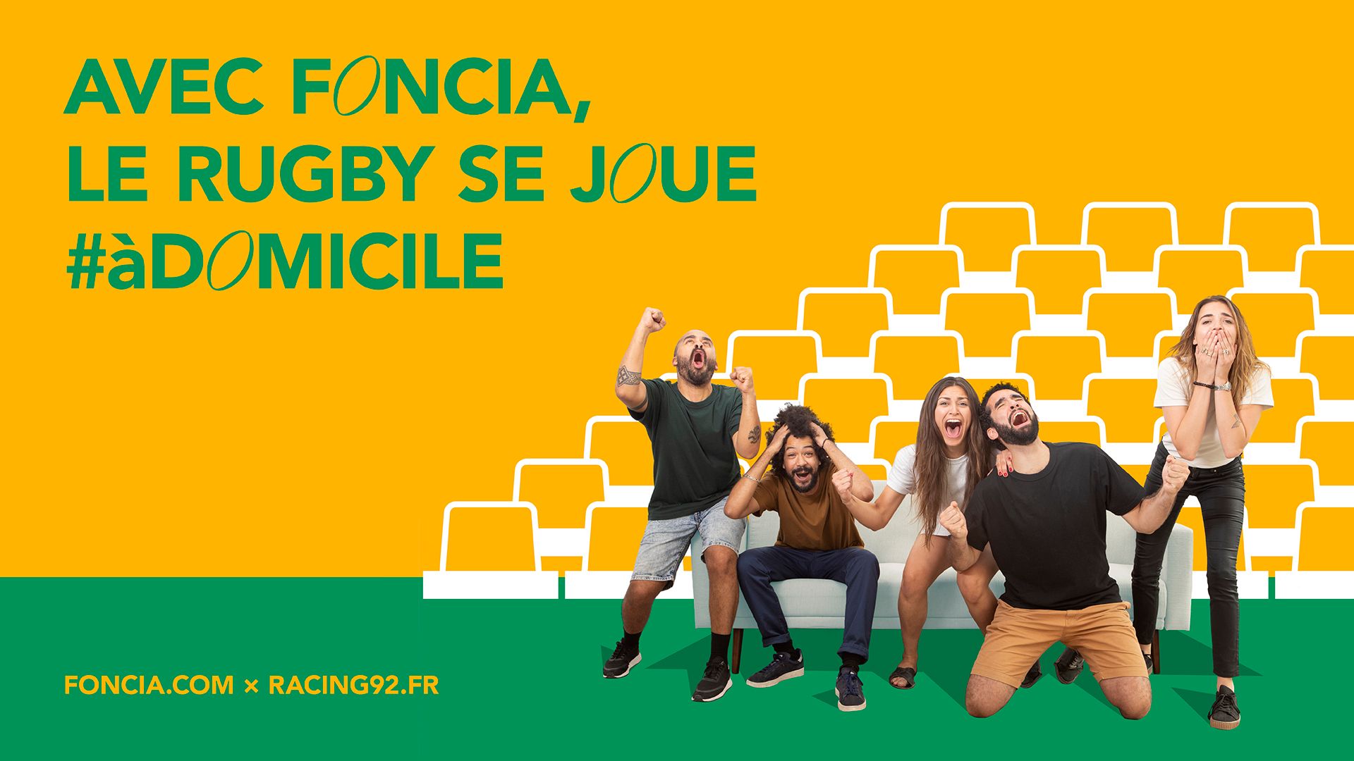 Leader européen des services immobiliers résidentiels, Foncia est un partenaire majeur du Racing 92 depuis 2015. En ouverture de la saison 2019-2020, Foncia lance une campagne afin de rapprocher les « fans » de rugby, pour vivre les matchs :