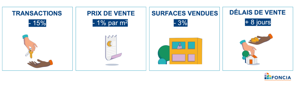 L’analyse du parc immobilier de Foncia à la fin de l’année 2023 révèle un marché immobilier en recul, marqué par une diminution de 15% des transactions sur l’ensemble de l’année. Cette tendance est principalement attribuée à une augmentation de 3 points des taux d’emprunt entre janvier 2022 et la fin de l’année 2023, limitant ainsi la capacité d’achat des emprunteurs.