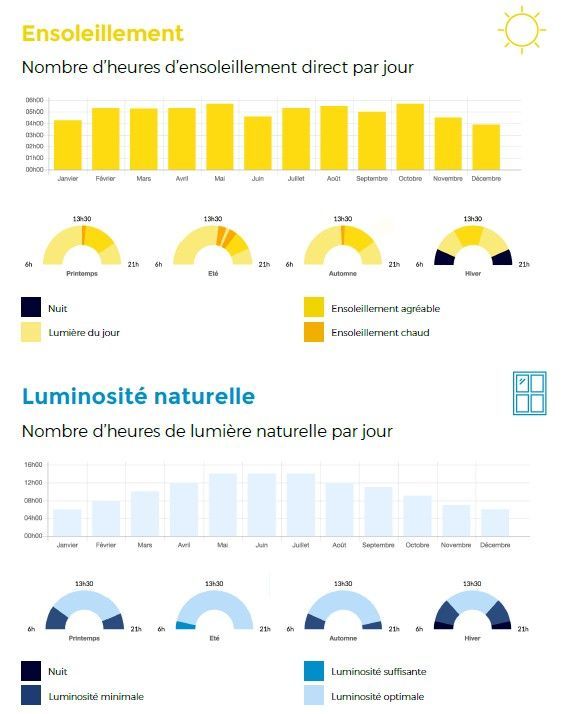 - l’ensoleillement direct, avec le nombre d’heures d’ensoleillement direct par jour,